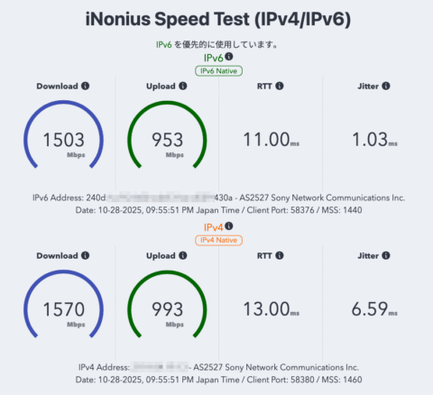 Nuroは下り2Gbps, 上り1Gbpsということで,その帯域を活かした結果が出ました.