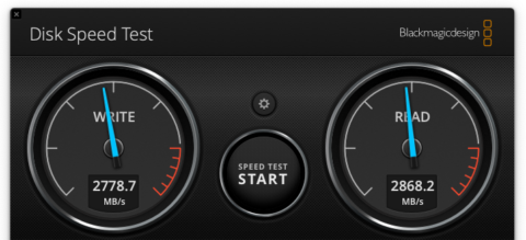 Black Magic Disk Speed Testで測定したら少し書き込み速度が落ちていました.